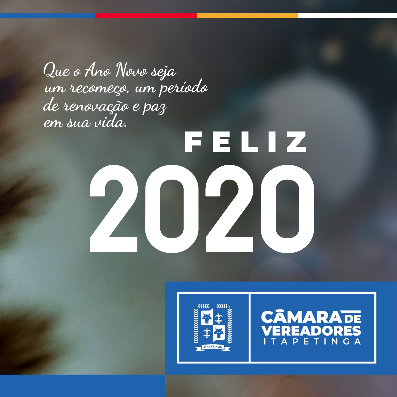 A Presidente da Câmara de Vereadores, Naara Lima Duarte, o vice-Presidente Alberto Barbosa e toda a mesa Diretora, desejam a toda comunidade de Itapetinga a paz, a esperança e, um novo ano de grandes realizações e conquistas. Grandes foram os passos dados rumo ao progresso em 2019. Esperamos que em 2020, possamos avançar ainda mais na construção de uma cidade cada vez mais forte e próspera. Esses são o sinceros votos de Feliz Ano Novo da Presidente Naara Duarte!