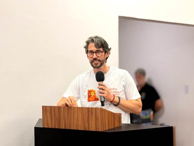 Durante sua fala, o delegado da Receita Federal, Arthur Leone, enfatizou a importância técnica e social da destinação do Imposto de Renda, destacando a diferença entre doação e destinação.