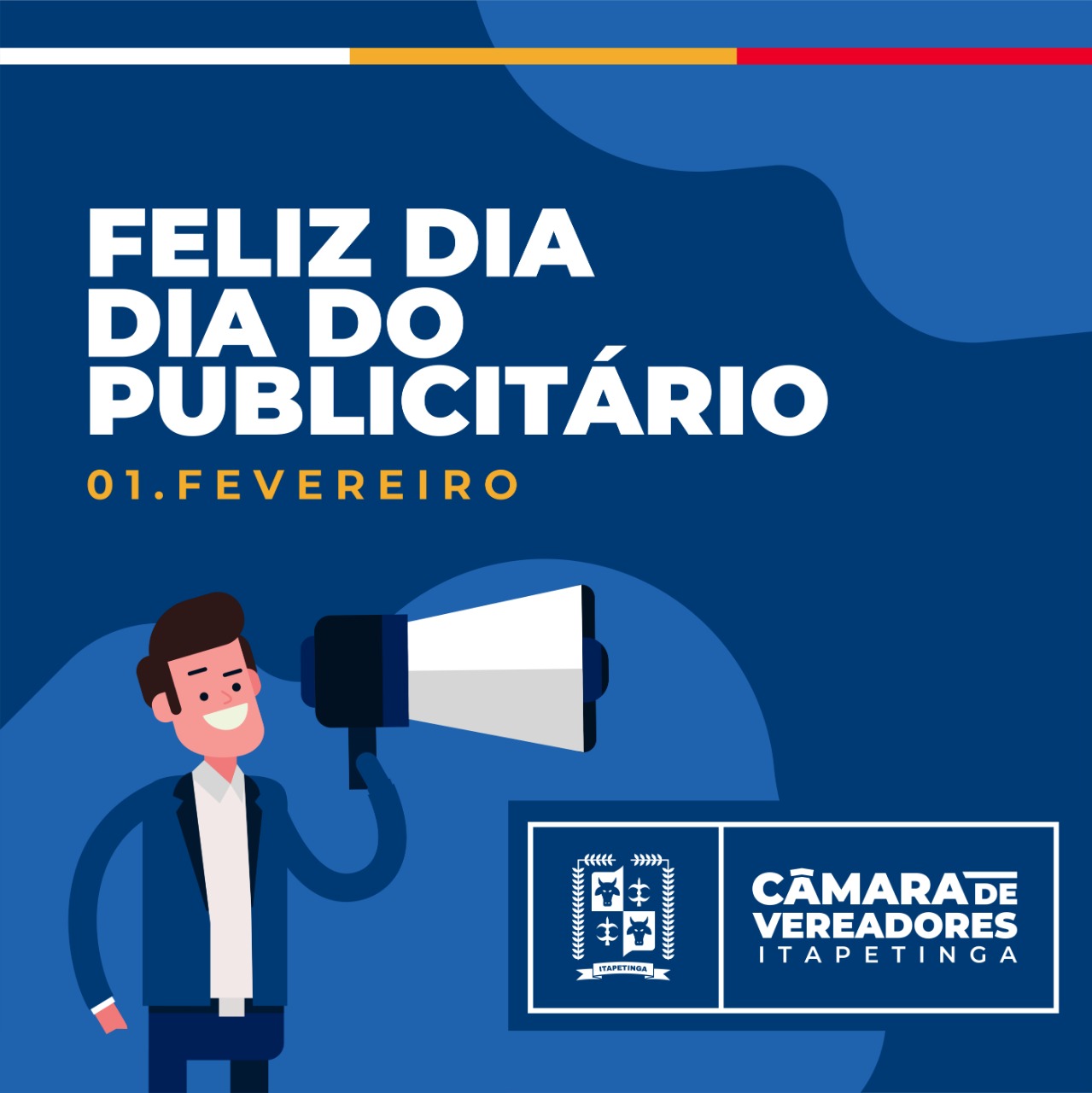 A Presidente da Câmara de Vereadores de Itapetinga, Naara Lima Duarte junto com a Mesa Diretora tem a grata satisfação de reconhecer a importância e Parabenizar os profissionais da comunicação social. Hoje dia (1) de Fevereiro comemora-se o Dia do Publicitário . A data homenageia os profissionais de comunicação social que são responsáveis por desenvolver no tecido social o pensamento criativo de campanhas publicitárias e promoção de marcas, organizações, pessoas, empresas, dentre outros setores da sociedade.