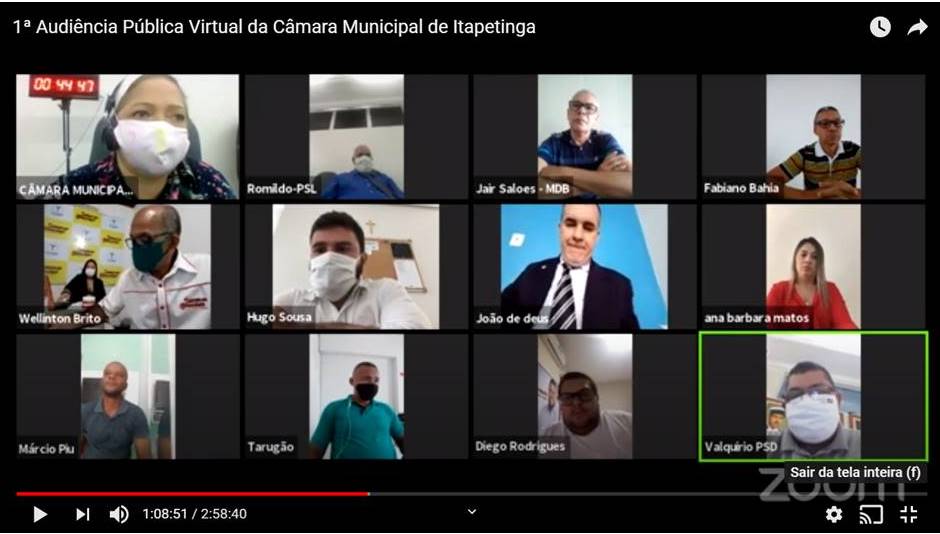 Nesta segunda-feira (4), a Câmara Municipal de Itapetinga realizou a primeira audiência pública virtual da sua história, para discutir a reabertura do comércio, seus efeitos e as medidas de segurança adotadas para o funcionamento dos estabelecimentos comerciais durante a pandemia da covid-19, doença causada pelo novo coronavírus.