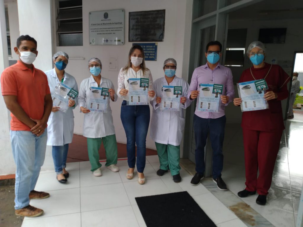 Hoje a Câmara de Vereadores fez uma homenagem simbólica aos profissionais de saúde com a veiculação de mensagem em carro de som, divulgação em redes sociais e doação de máscaras faciais feitas de acrílico para trabalhadores do Hospital Cristo Redentor e da UPA – Unidade de Pronto Atendimento.