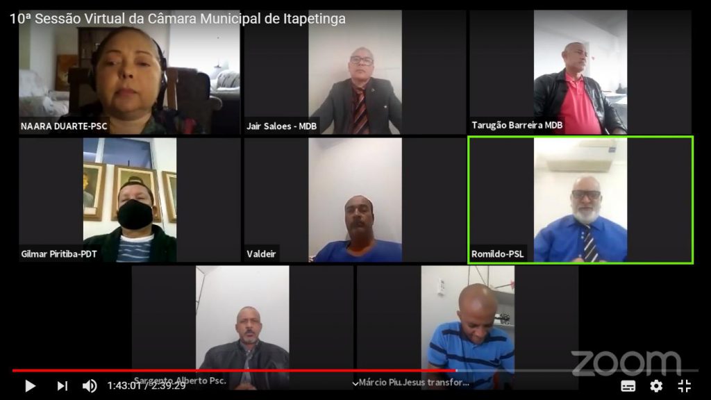Desde o dia 15 de abril, a Câmara Municipal de Itapetinga vem realizando sessões virtuais para dar continuidade aos trabalhos legislativos durante a pandemia da Covid-19. Nesta quarta-feira (17), aconteceu a décima sessão por meio de uma plataforma digital.