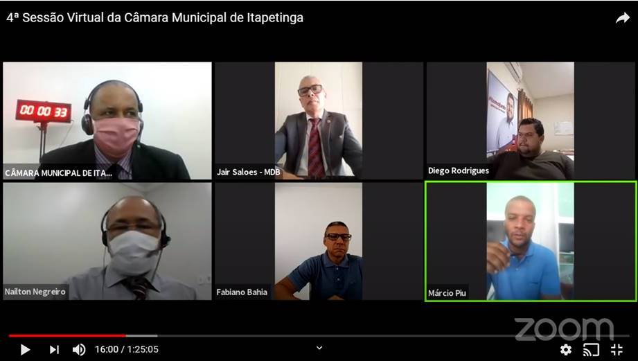 Na manhã desta quarta-feira (6), a Câmara Municipal de Itapetinga realizou mais uma sessão virtual, com transmissão ao vivo pelo canal TV Câmara Itapetinga no Youtube e pela Fascinação AM. Os vereadores discutiram sobre o enfrentamento do coronavírus no município e a importância do cumprimento das medidas preventivas contra a covid-19.