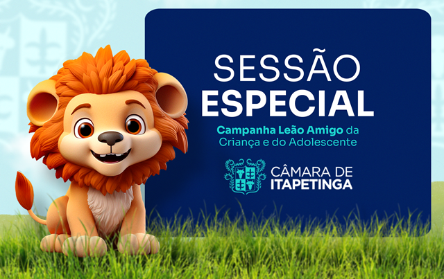 A Câmara Municipal de Itapetinga realizará, nesta quarta-feira, 15 de abril, às 10 horas, uma Sessão Especial dedicada à Campanha Leão Amigo da Criança e do Adolescente, com o objetivo de incentivar a destinação de parte do Imposto de Renda ao Fundo Municipal dos Direitos da Criança e do Adolescente (FMDCA).