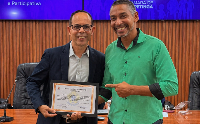 Na ocasião, foi entregue a Moção de Aplausos nº 049/2026 ao secretário Alécio Chaves, em reconhecimento aos relevantes serviços prestados à educação pública do município, especialmente pelos avanços nos índices de alfabetização, que registraram crescimento superior a 77% no número de estudantes alfabetizados na idade certa.