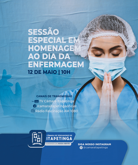 Por iniciativa da vereadora Manu Brandão (MDB), a Câmara Municipal de Itapetinga vai realizar uma sessão especial em homenagem ao Dia da Enfermagem. O evento acontecerá nesta quarta-feira (12), às 10 horas, no Plenário Ulysses Guimarães.
