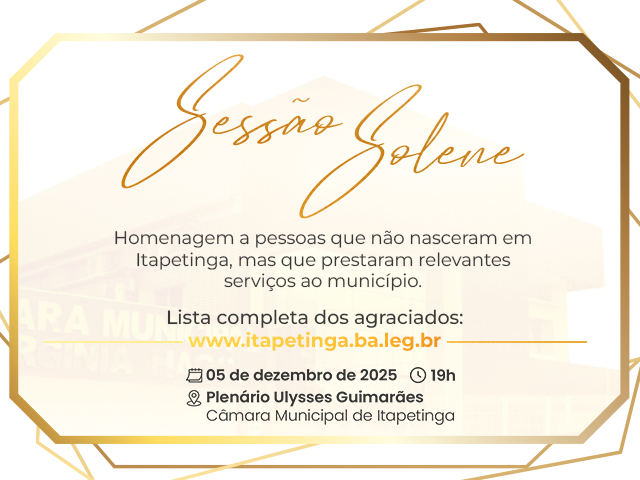 A Câmara Municipal de Itapetinga realizou, na manhã desta quarta-feira (2), a solenidade de transmissão de cargos da Mesa Diretora, que passa a ser presidida pela vereadora Naara Duarte (DEM). O ato simbólico contou com a presença de autoridades municipais, entre elas o prefeito Rodrigo Hagge e o vice-prefeito Renan Pereira, além de ex-vereadores, representantes de organizações sociais e pessoas da comunidade local.
