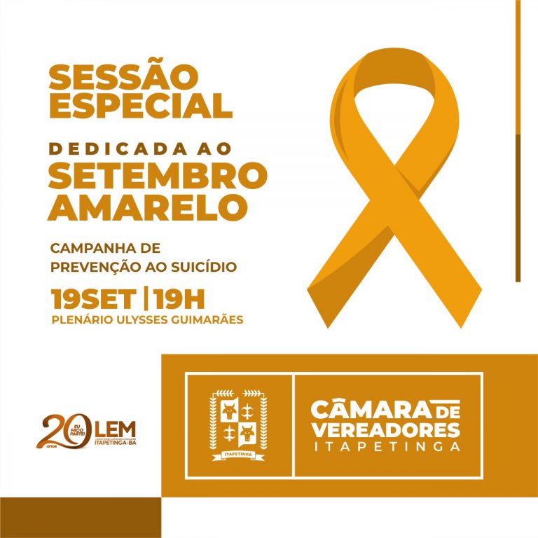 A Câmara Municipal de Itapetinga realizou, nessa quinta-feira (19), uma sessão especial alusiva ao Setembro Amarelo, campanha de conscientização sobre a prevenção ao suicídio. De