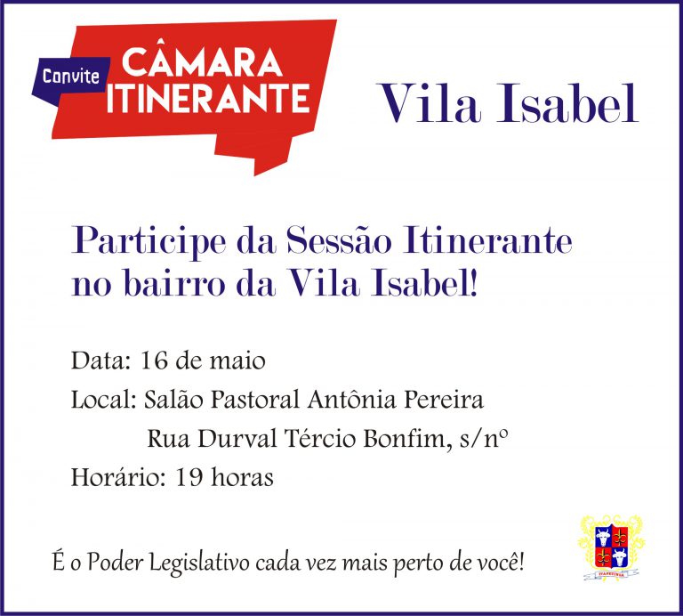A Câmara Municipal de Itapetinga vai realizar uma sessão itinerante na Vila Isabel, para discutir melhorias para o bairro e aproximar o Poder Legislativo da